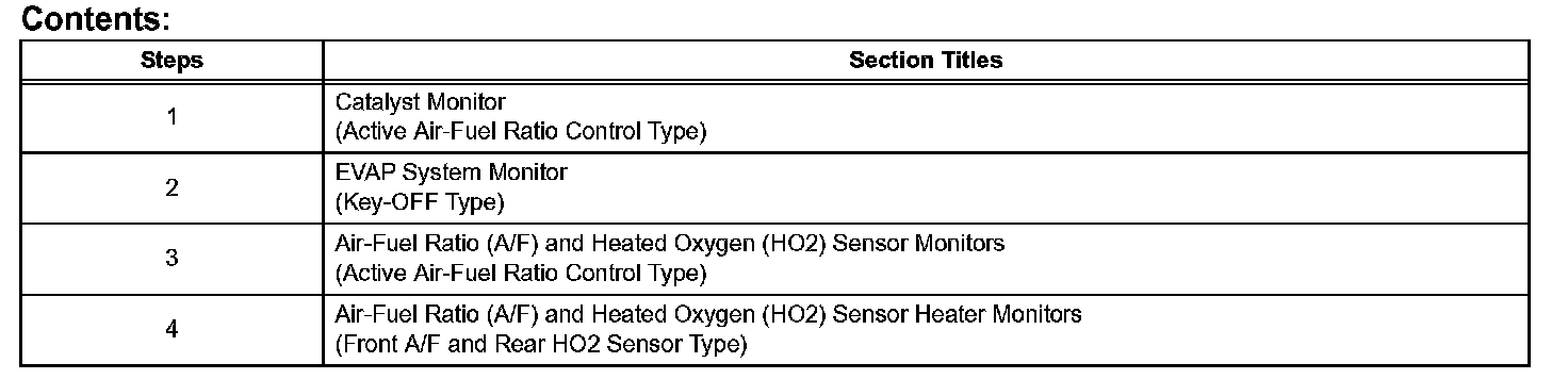 4. AIR-FUEL RATIO (A/F) AND HEATED OXYGEN (HO2) SENSOR MONITORS (ACTIVE AIR-FUEL RATIO CONTROL TYPE)