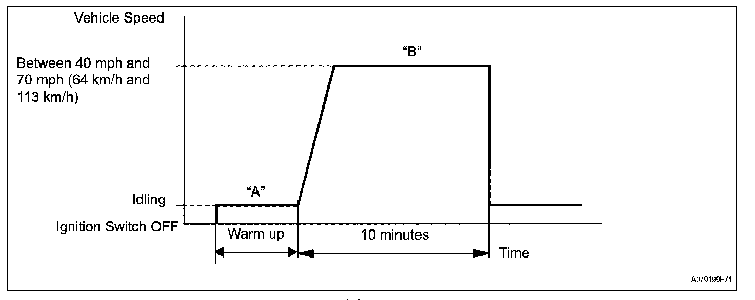 6. Drive the vehicle at between 40 mph and 70 mph (64 km/h and 113 km/h) for at least 10 minutes (Procedure "B").