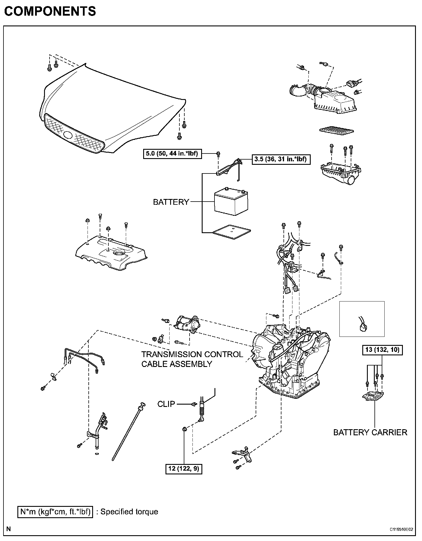 Torque: 5.5 Nm (56 kgf/cm, 49 in. lbs.)