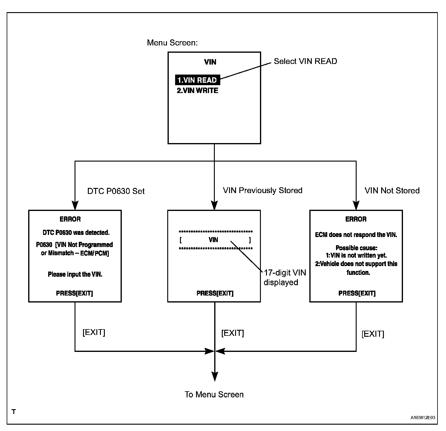 a. Explains the VIN reading process in a flowchart. Reading the VIN stored in the ECM is necessary when comparing it to the VIN provided with the vehicle.