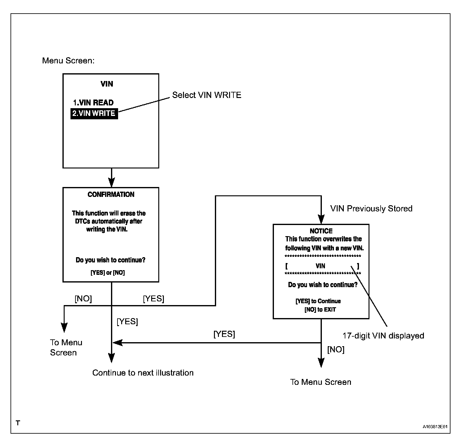 This process allows the VIN to be input into the ECM. If the ECM is changed, or the ECM VIN and Vehicle VIN do not match, the VIN can be registered, or overwritten in the ECM by following this procedure.