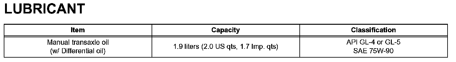 Manual Transaxle - Lubricant: