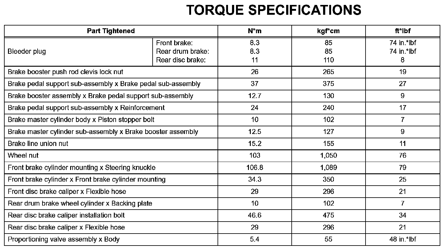 Brake - Torque Specifications: