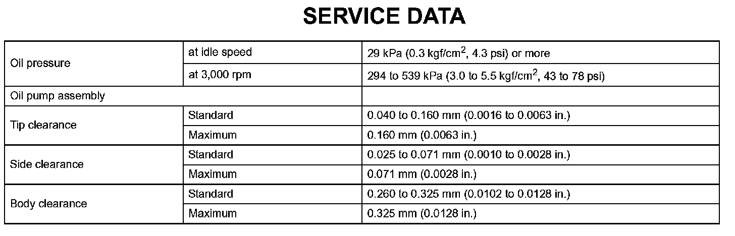 Lubrication - Service Data: