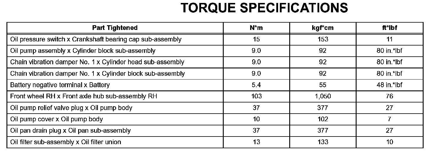 Lubrication - Torque Specifications: