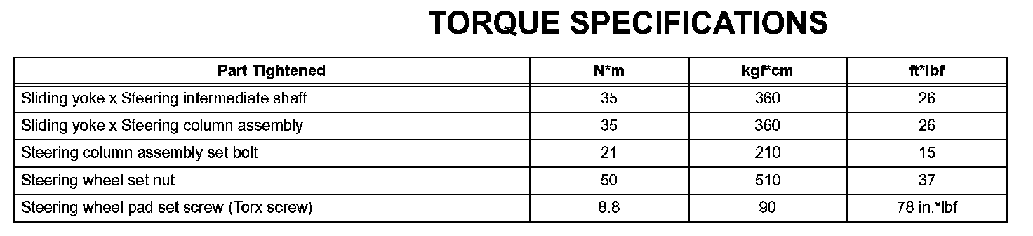 Steering Column - Torque Specifications: