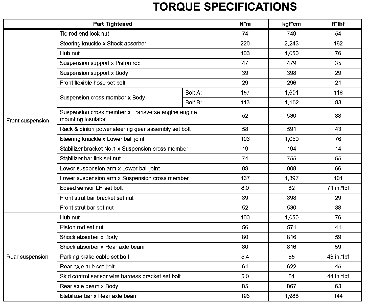 Suspension - Torque Specifications: