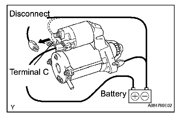 1. Disconnect the negative (-) lead from terminal C. Check that the clutch pinion gear remains extended.