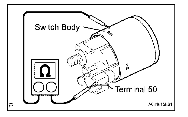 2. Using an ohmmeter, check that there is resistance between terminal 50 and the switch body.