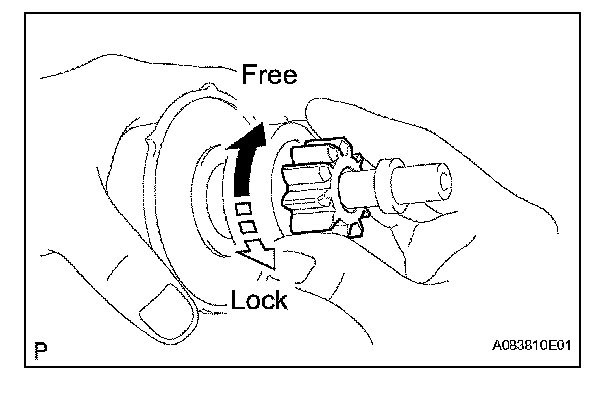 1. Turn the clutch pinion gear clockwise, then check that it turns freely. Try to turn the clutch pinion gear counterclockwise, then check that it locks.