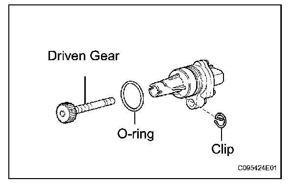 (b) Install the driven gear to the speedometer sensor with the clip.