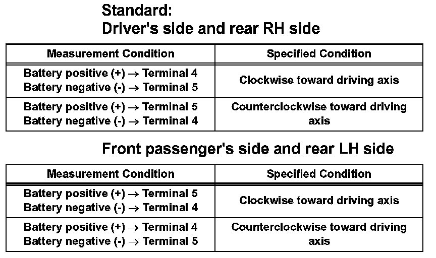 1. Check that the motor operates smoothly when battery positive voltage is applied to each terminal of the connector.