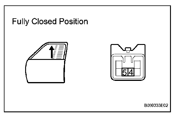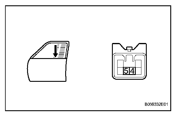 4. When approximately 60 seconds have elapsed after the inspection of the current cut-off, check that the door glass moves down when the power window regulator DOWN switch is pushed.