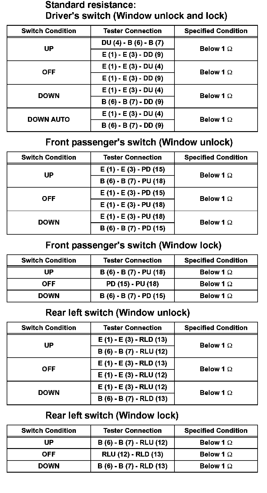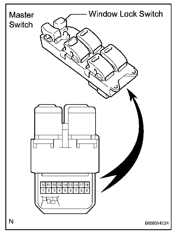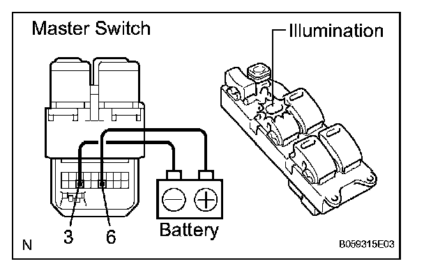 1. INSPECT POWER WINDOW REGULATOR MASTER SWITCH ASSEMBLY