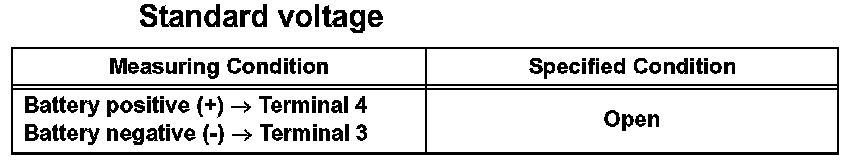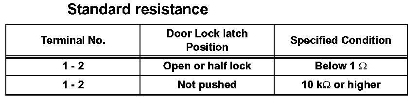 a. Apply battery voltage and inspect the window lock motor operation, as shown in the illustration and table.
