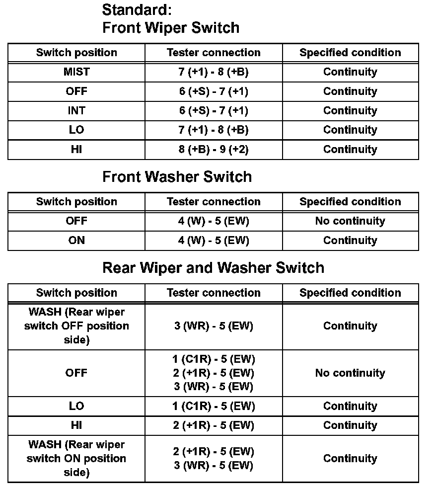 INSPECTION1. INSPECT WINDSHIELD WIPER SWITCH ASSEMBLY