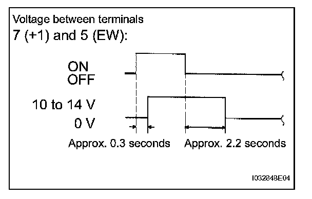 1. Connect the voltmeter (+) terminal to terminal 7 (+1) the connector, the voltmeter (-) terminal to terminal 5 (EW) of the connector.