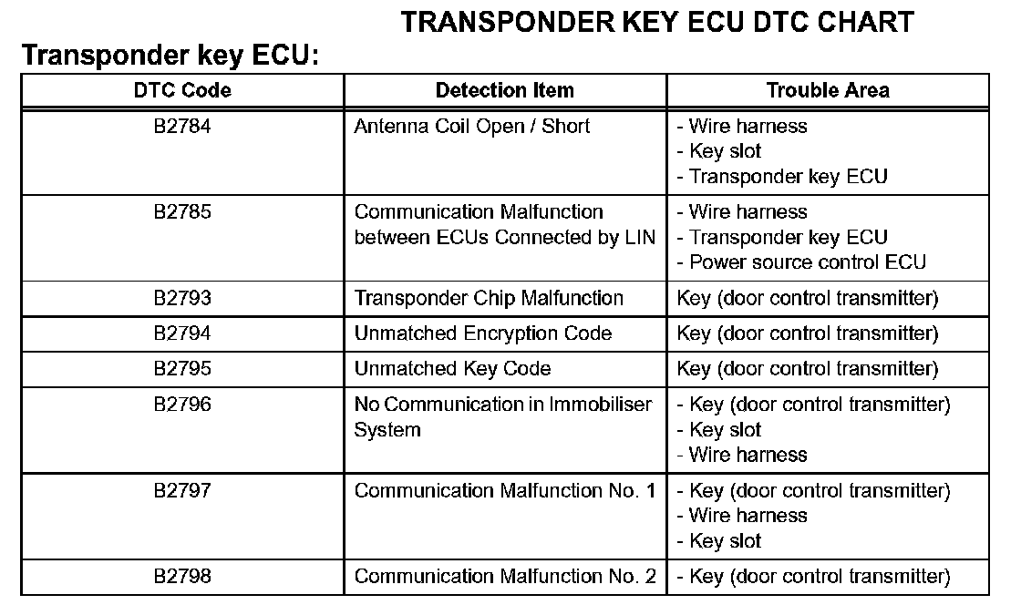 Engine Immobiliser System (w/o Smart Key System)