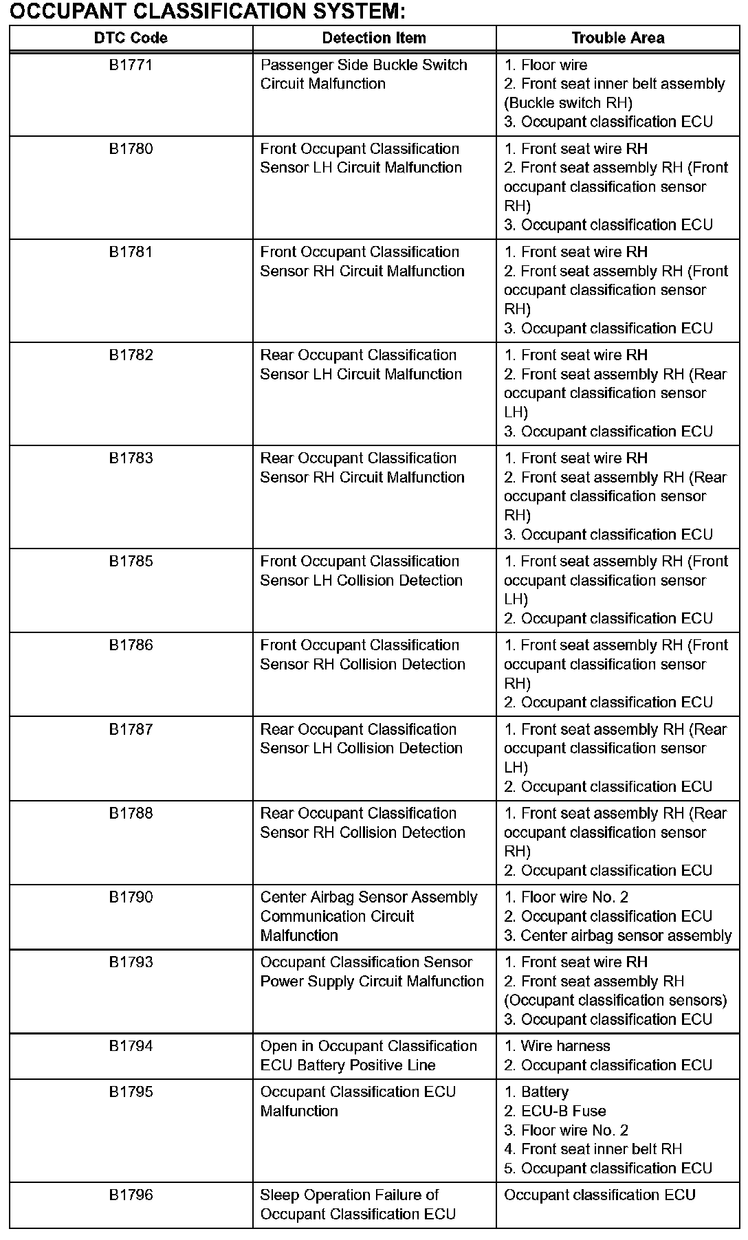 If a trouble code is displayed during the DTC check, check the circuit listed for the code in the table (proceed to the DTC Code listed for that circuit).