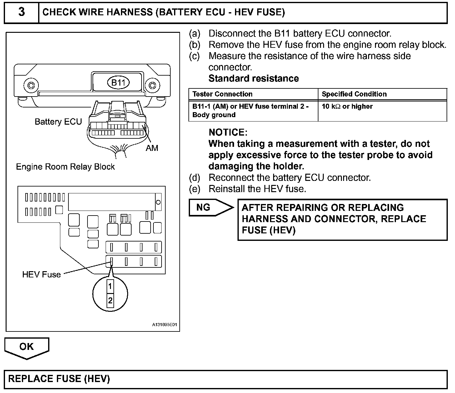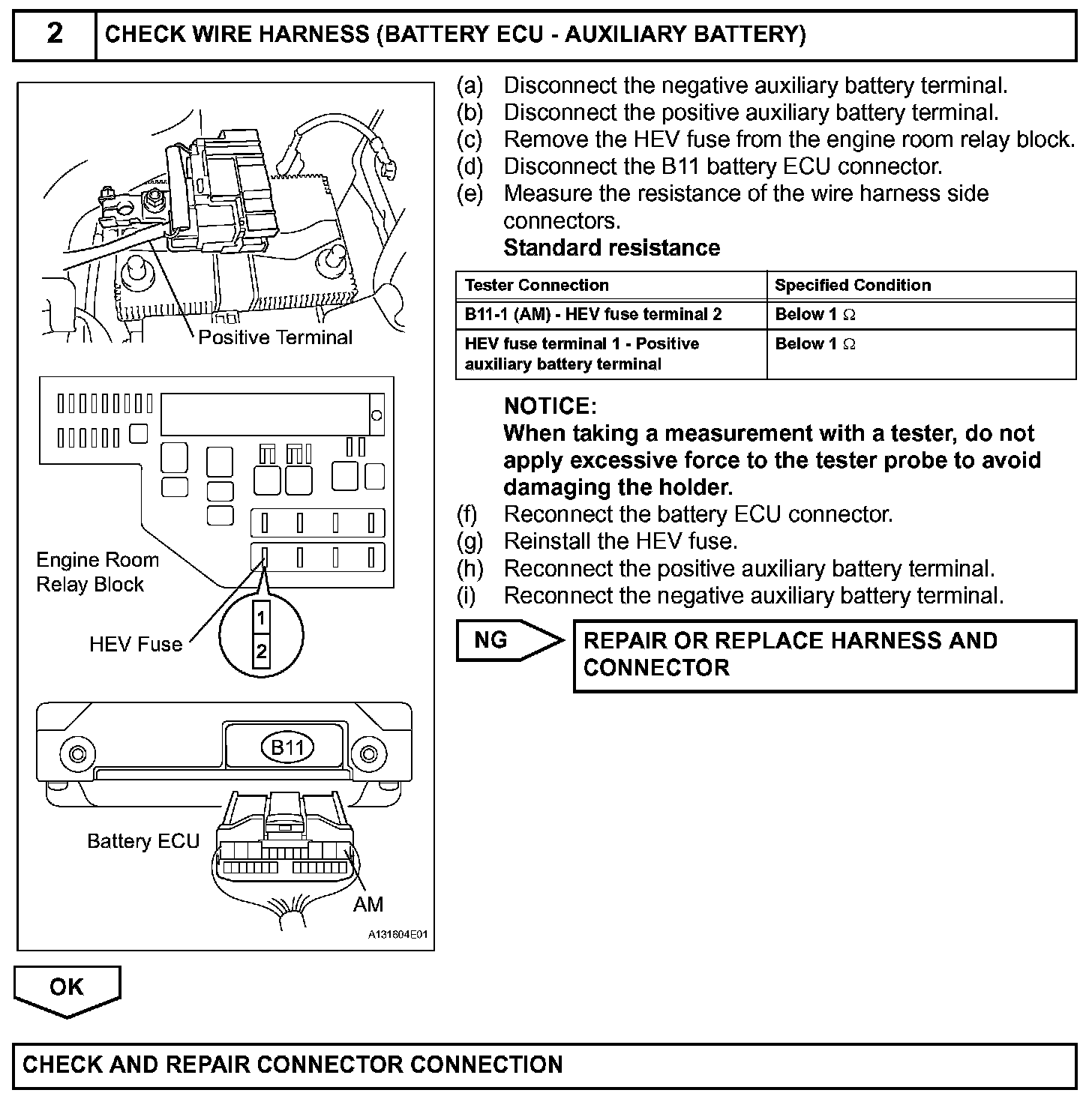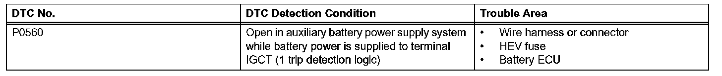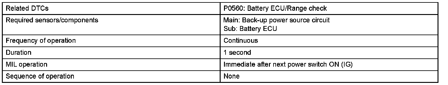 If 1 or more seconds have elapsed with a voltage of 1 V or less at the AM terminal at the battery ECU, the battery ECU will determine that malfunction has occurred in the back-up power supply system, illuminate the MIL, and set a DTC.