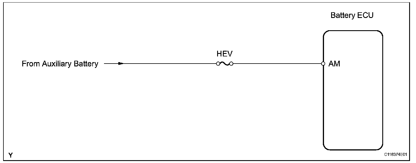 Battery power is constantly supplied to the AM terminal of the battery ECU for the purpose of maintaining the DTCs and freeze frame data in memory. This voltage is supplied as a backup even if the power switch is turned OFF.