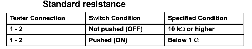 If the result is not as specified, replace the switch.