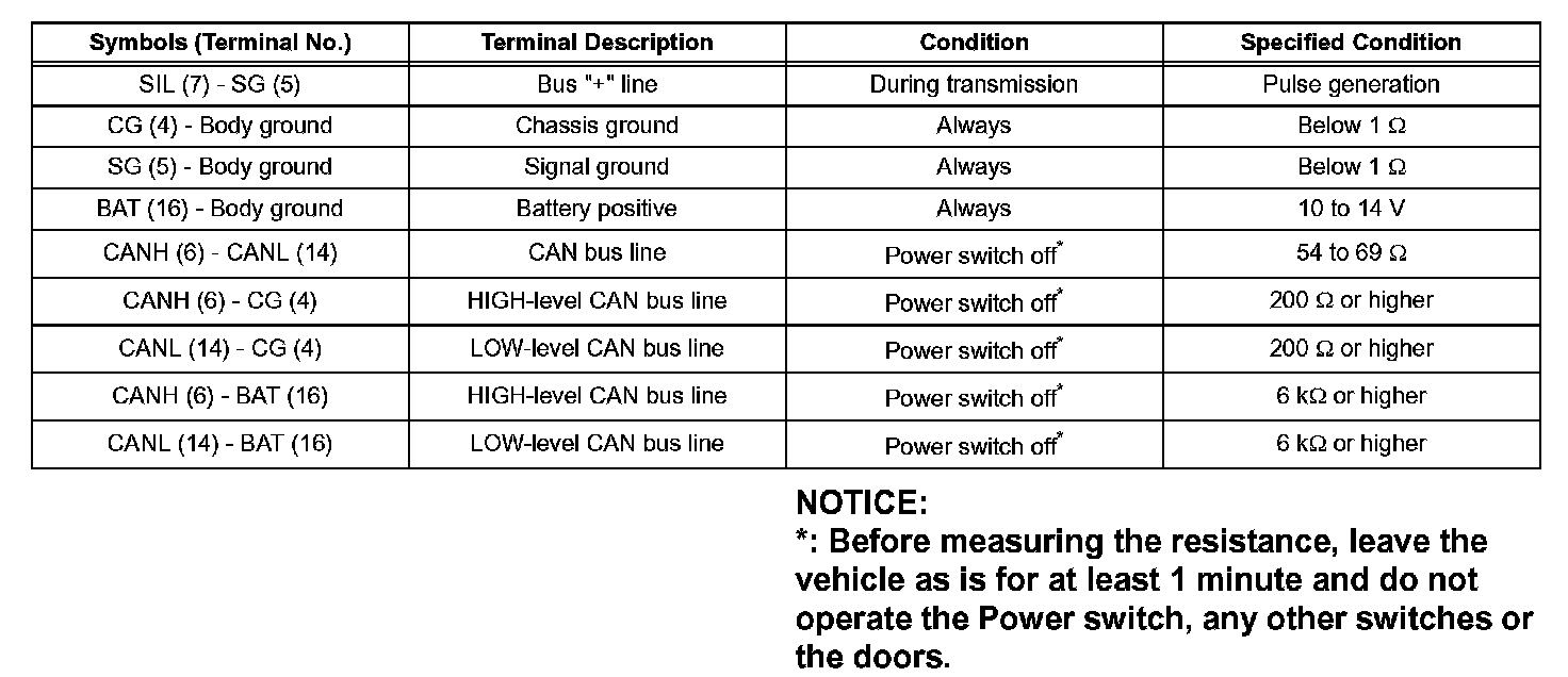 If the result is not as specified, the DLC3 may have a malfunction. Repair or replace the harness and connector.