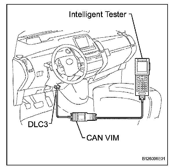 b. Connect the cable of the intelligent tester (with CAN VIM) to the DLC3, turn the power switch on (IG) and attempt to use the intelligent tester. If the screen displays a communication error message, a problem exists in the vehicle side or tester side.