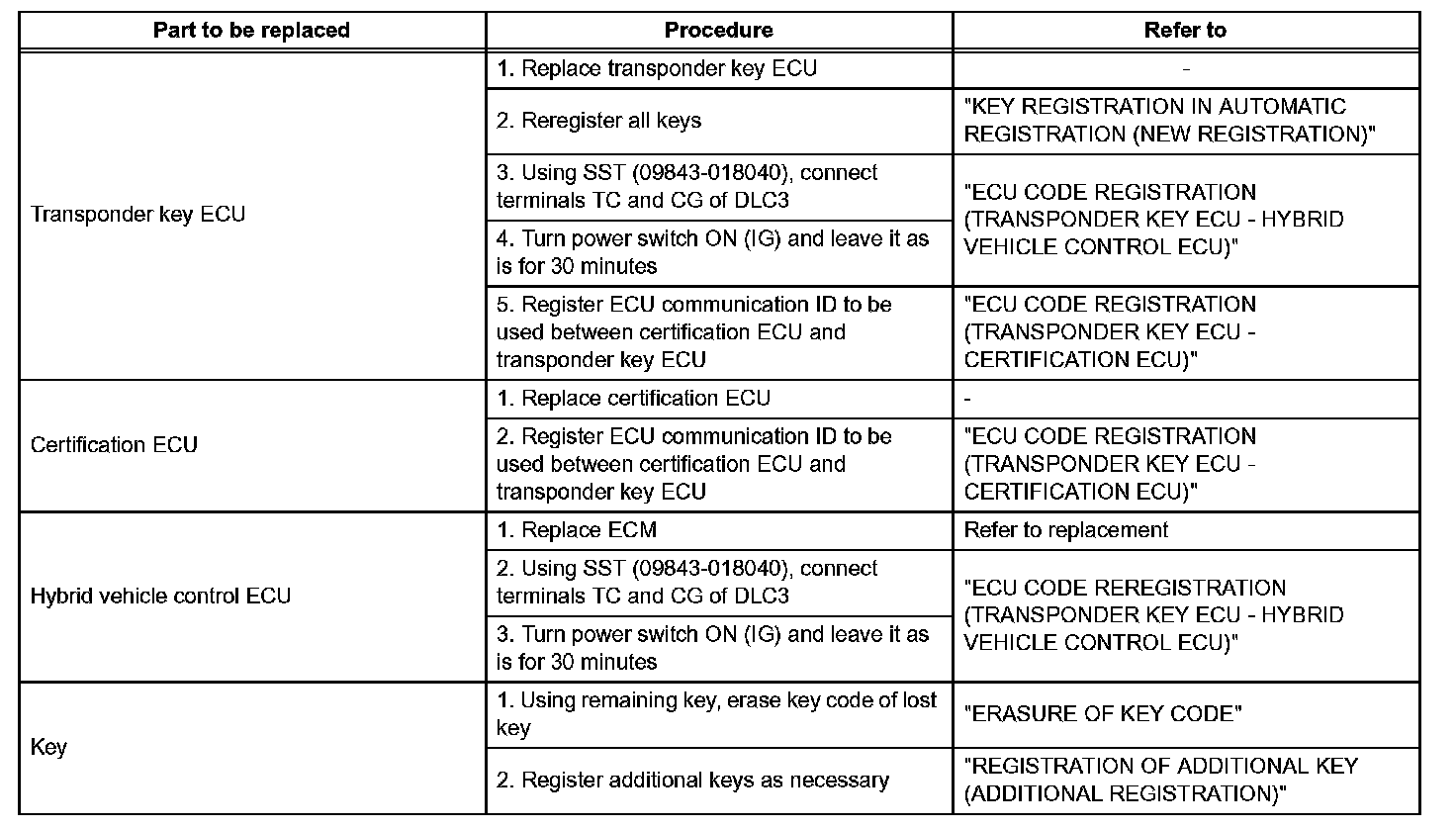- The ECU communication ID should be registered when the hybrid vehicle control ECU is replaced in order to match the ECU communication ID (transponder key ECU - hybrid vehicle control ECU).