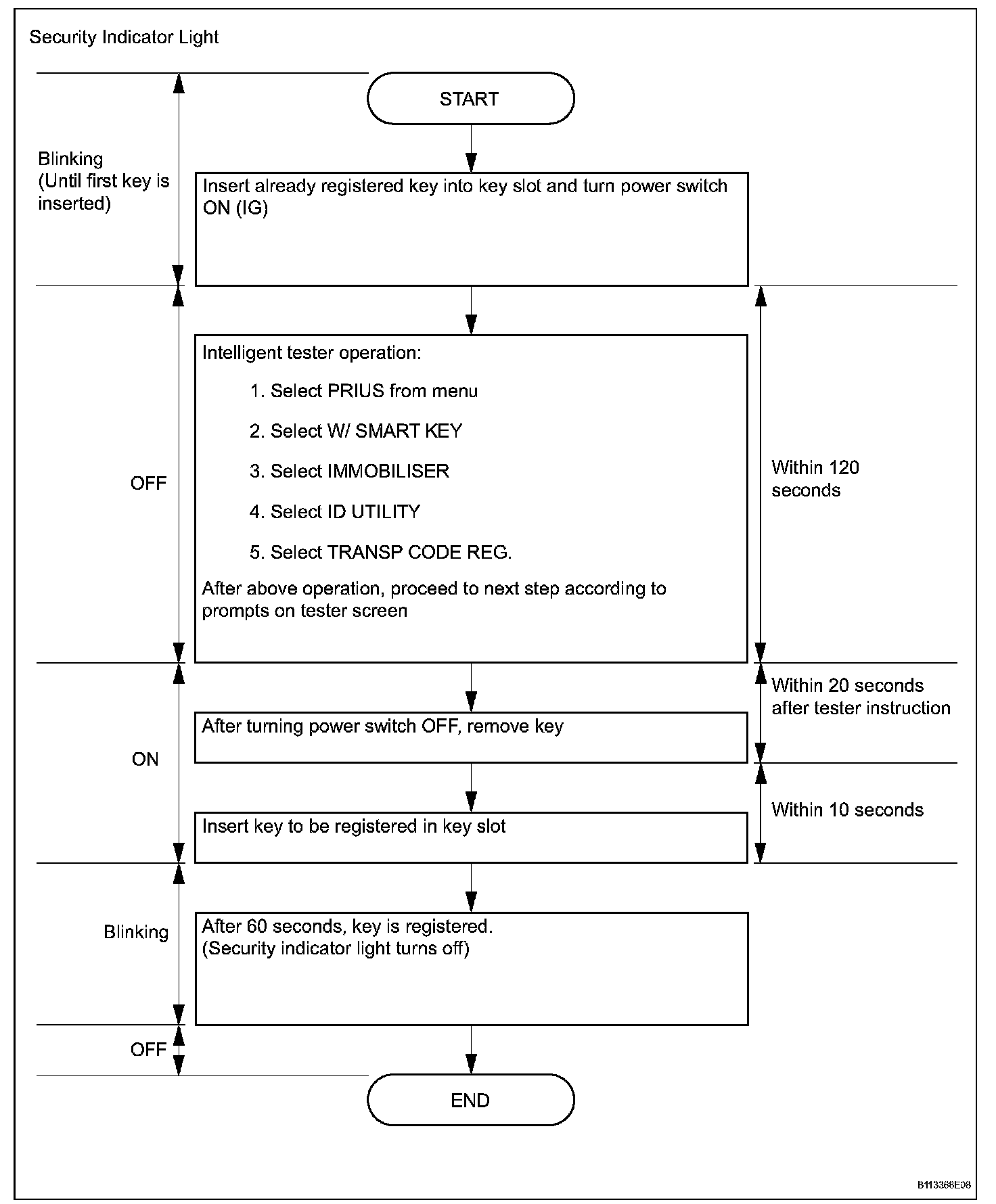 1. Turn the power switch from ON (IG) and OFF 5 times within 10 seconds using the already registered key.