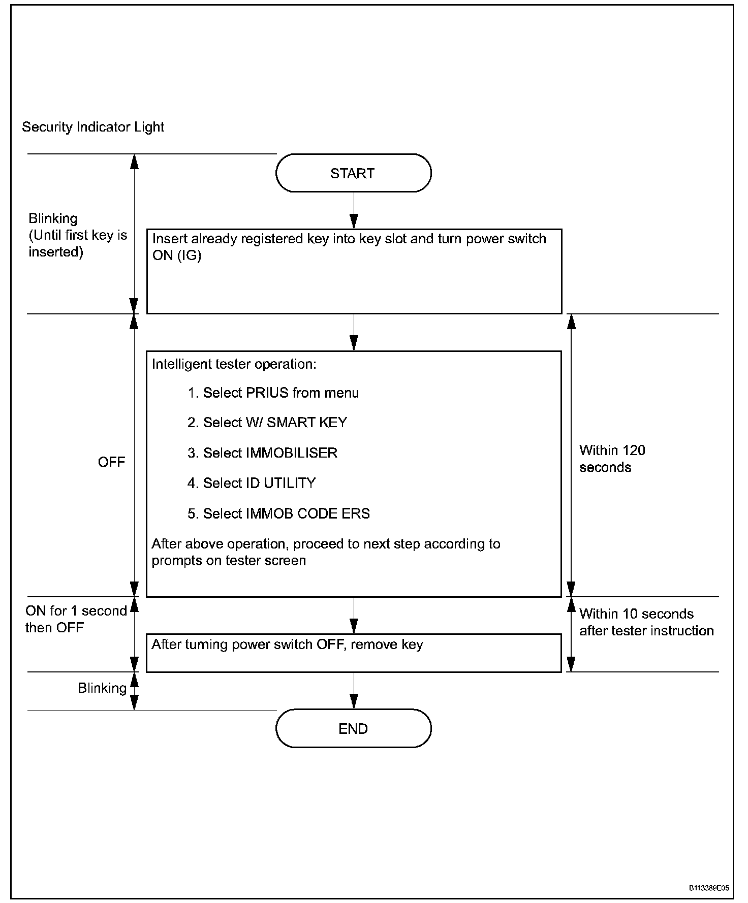 - A brief outline of procedures for the key code erasure is shown. For more detailed information, refer to the intelligent tester screen's instructions.