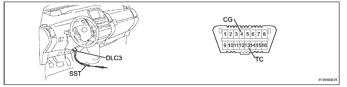 b. Using SST, connect terminals TC and CG of the DLC3.