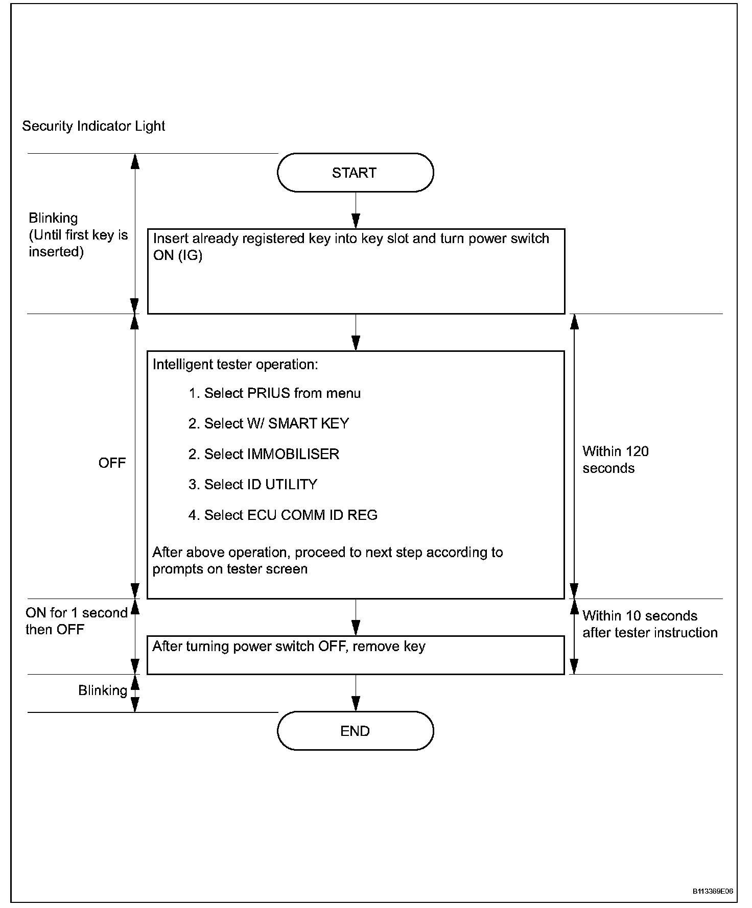 - A brief outline of procedures for key code registration is show. For more detailed information, refer to the intelligent tester screen's instructions.