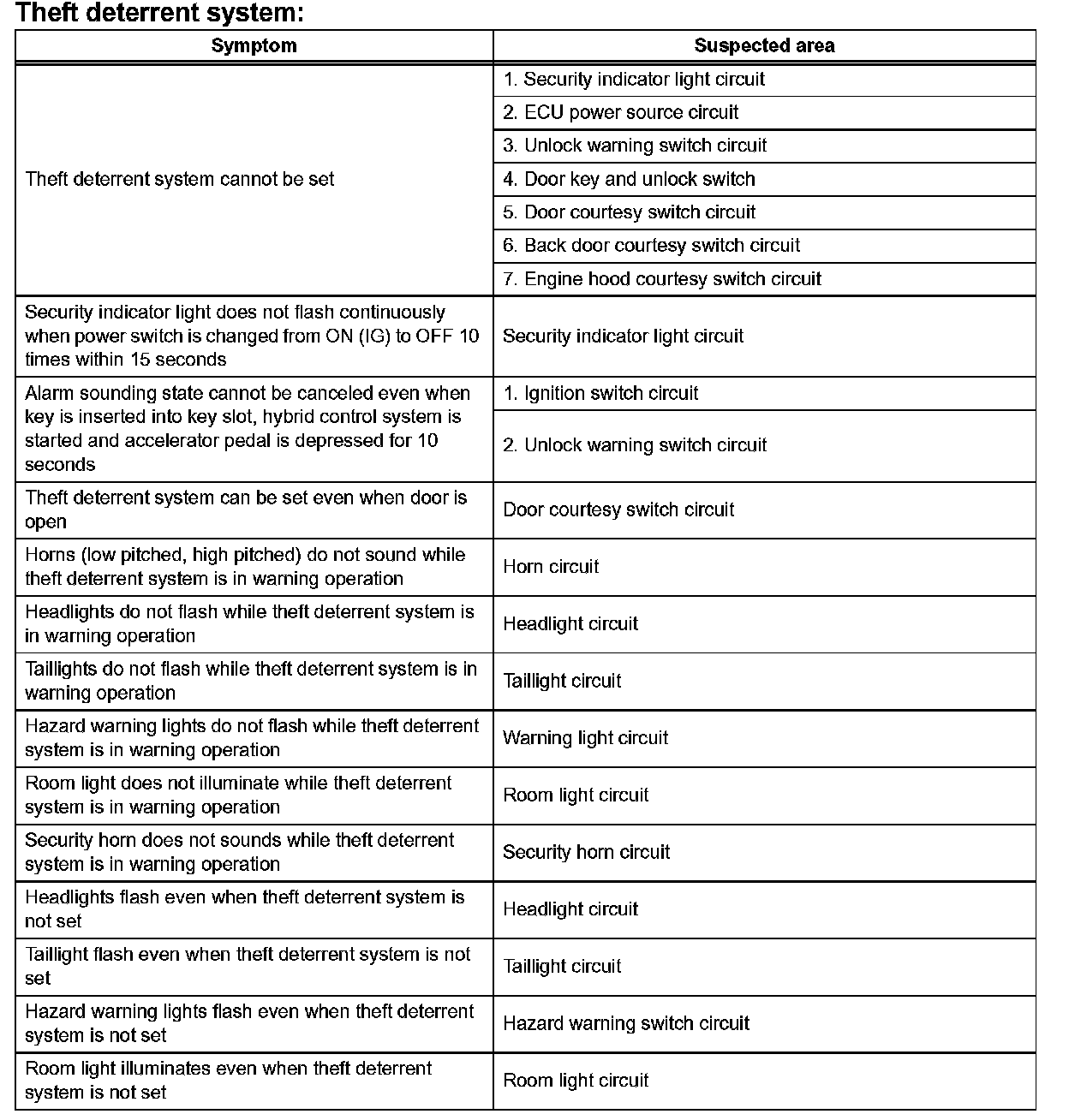 PROBLEM SYMPTOMS TABLEProblem Symptoms Table - Theft Deterrent System:
