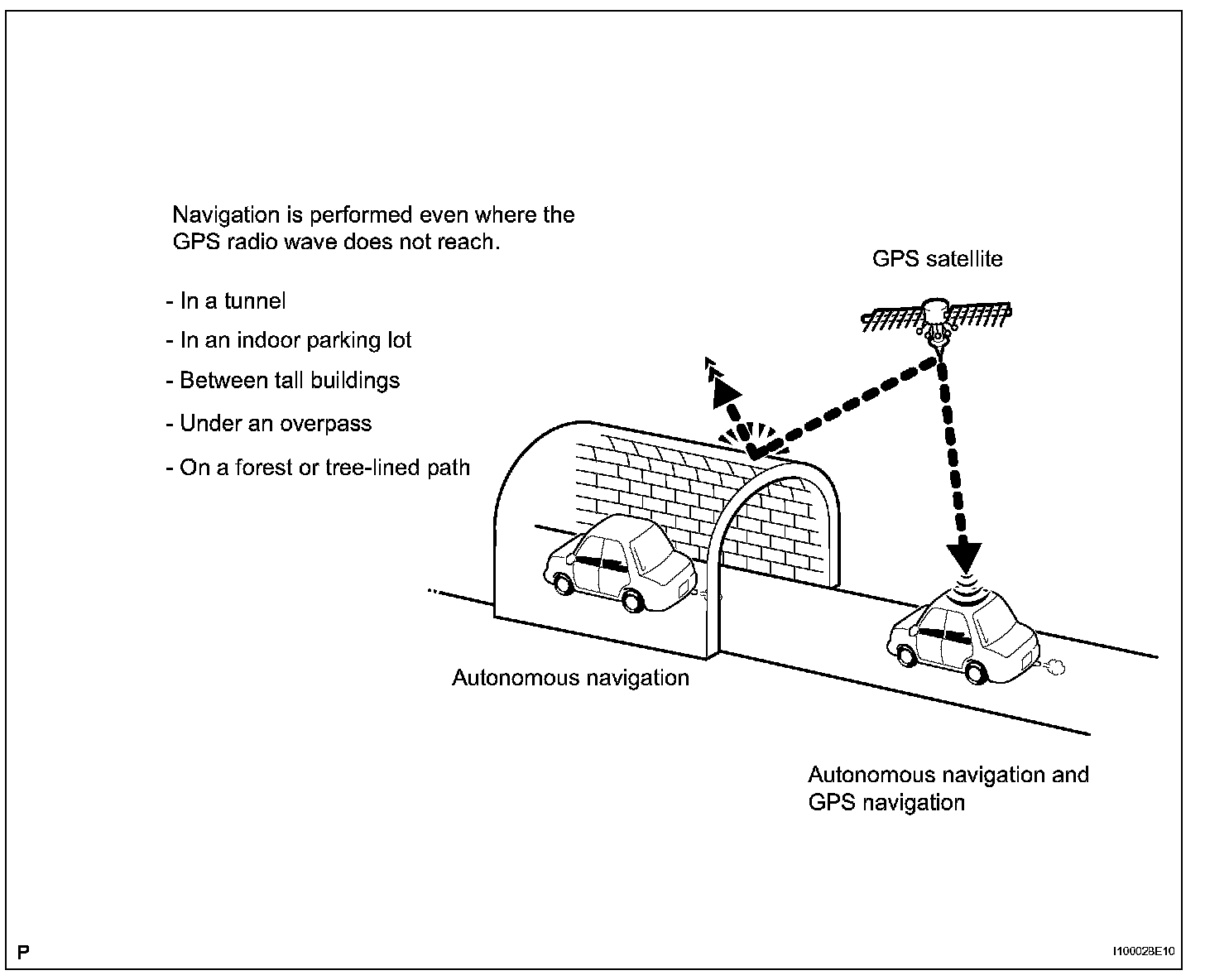 HINT: The combination of autonomous and GPS navigation makes it possible to display the vehicle position even when the vehicle is in places where the GPS radio wave cannot receive a signal. When only autonomous navigation is used, however, the mapping accuracy may slightly decline.