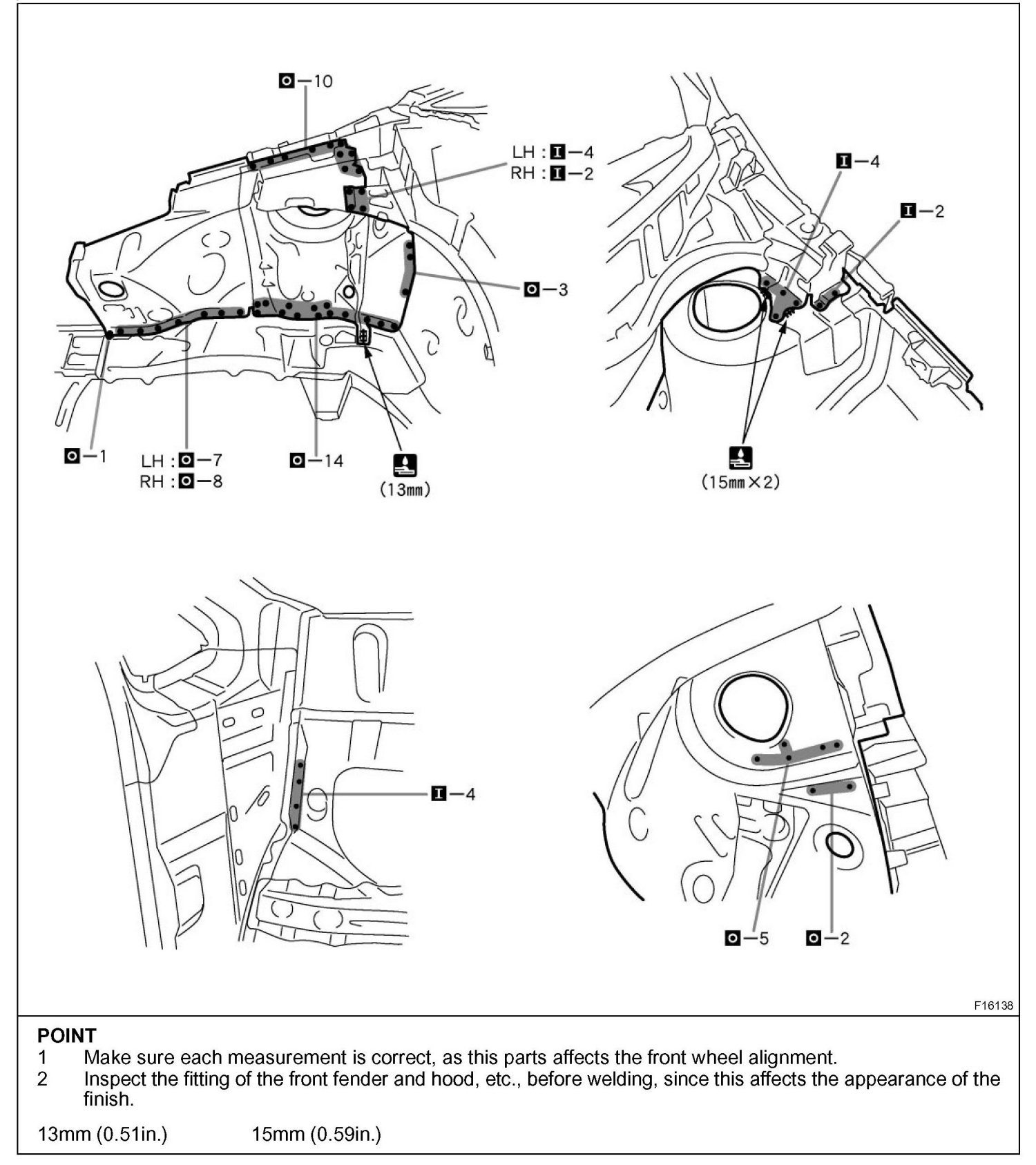- Inspect the fitting of the related parts around the new parts before welding. This affects the appearance of the finish.