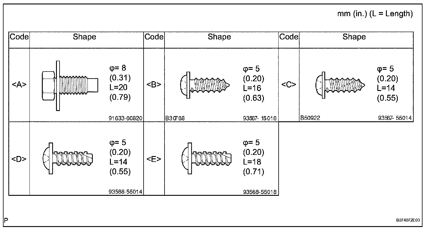 HINT: All bolts, screws and nuts relevant to installing and removing the instrument panel are shown along with an alphabetical code in the table.