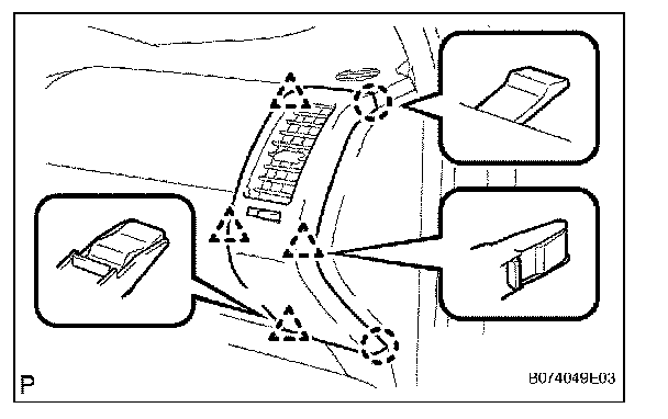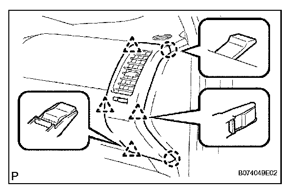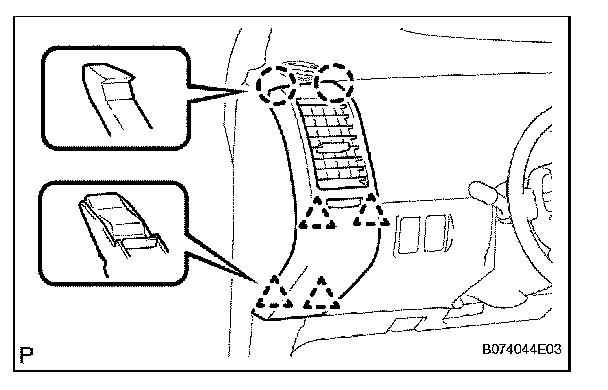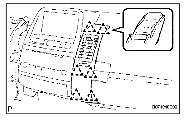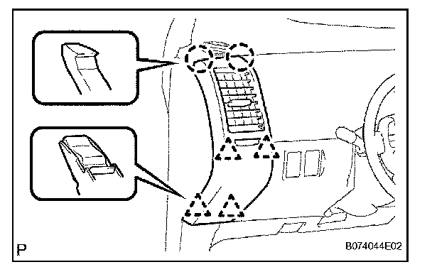 a. Detach the 2 claws and 4 clips, and remove the instrument panel register.