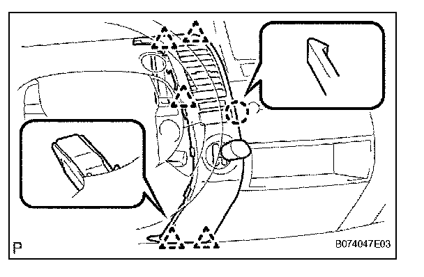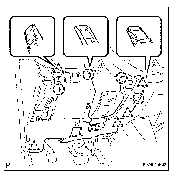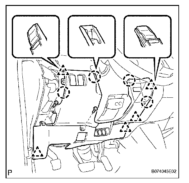 b. Attach the 3 claws and 4 clips to install the instrument panel finish panel.