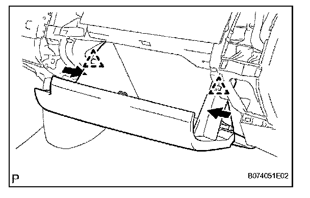 b. While pushing in the sides of the glove compartment door as indicated by the arrows in the illustration, engage it to the 2 stoppers.