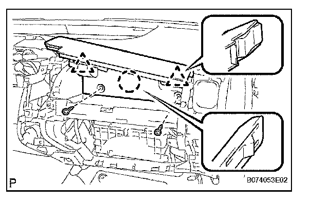 a. Attach the 2 claws and 4 clips to install the instrument panel register.