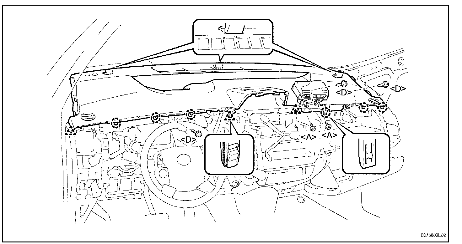 b. Attach the claw and 5 clips to install the instrument panel register.