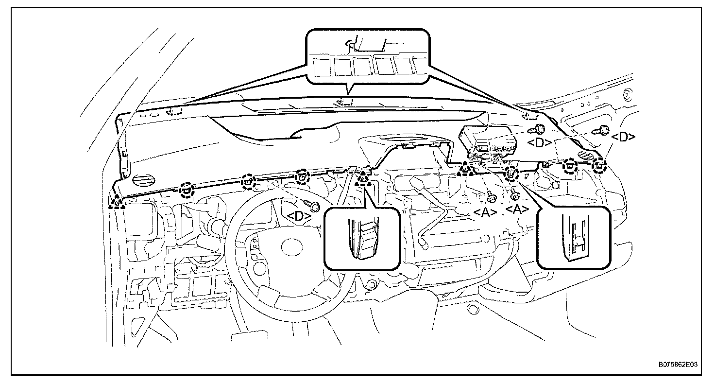 a. Attach the 6 claws and 3 clips to install the instrument panel.