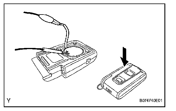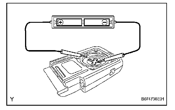 HINT: When a new or non-depleted transmitter battery is not available, connect 2 new 1.5 V batteries in series. Then connect leads to the batteries and use the leads to apply voltage of 3 V to the transmitter, as shown in the illumination.