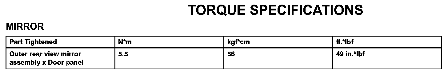Mirror - Torque Specifications: