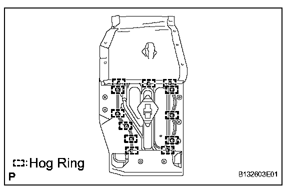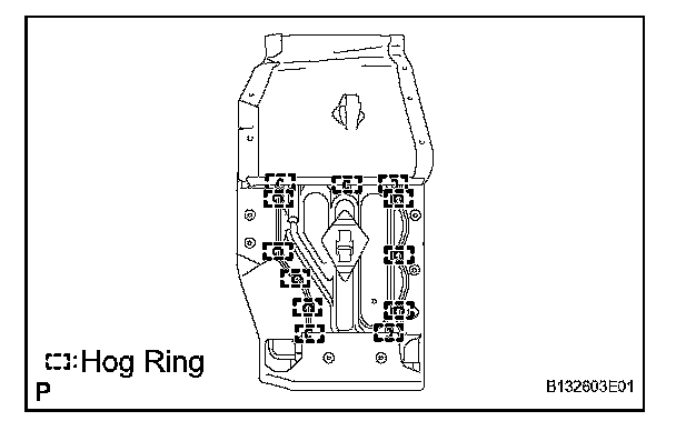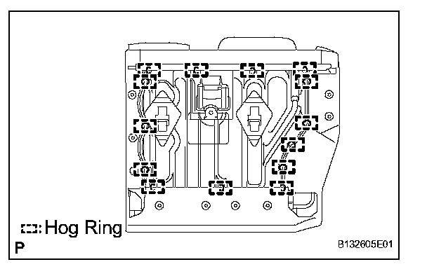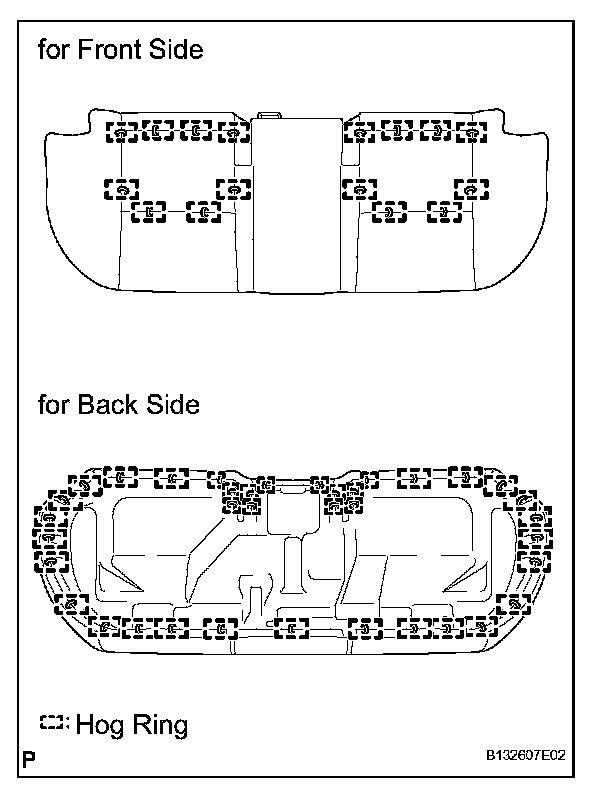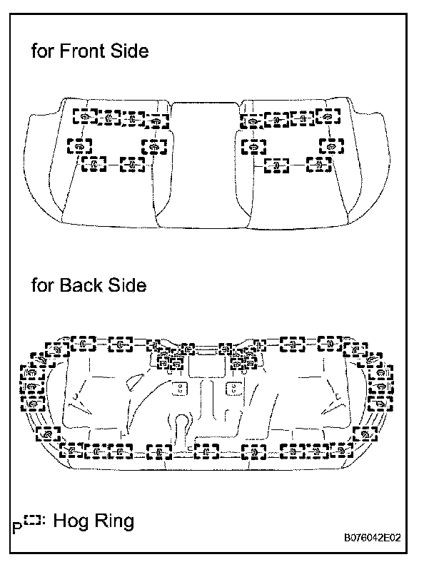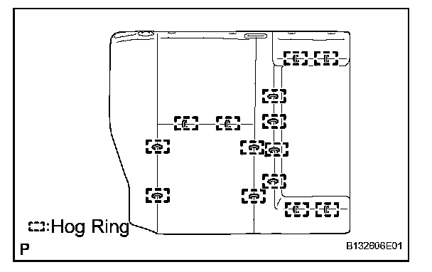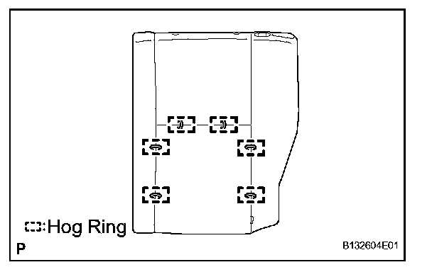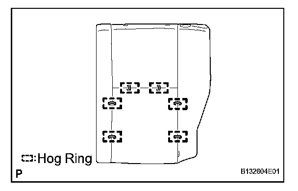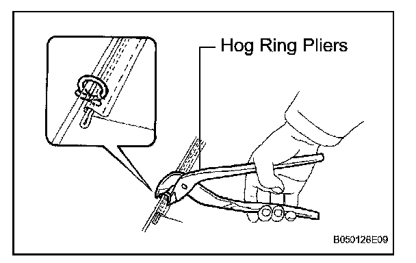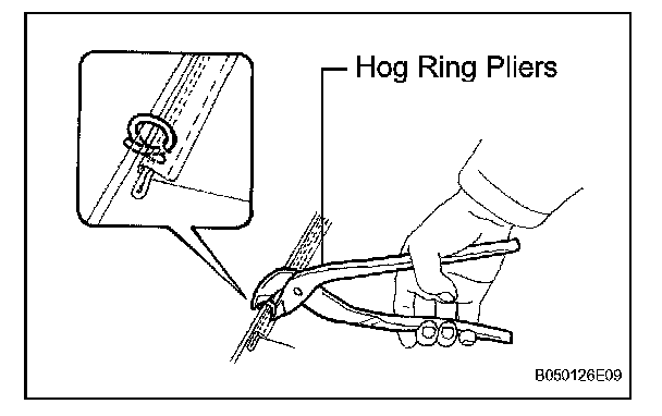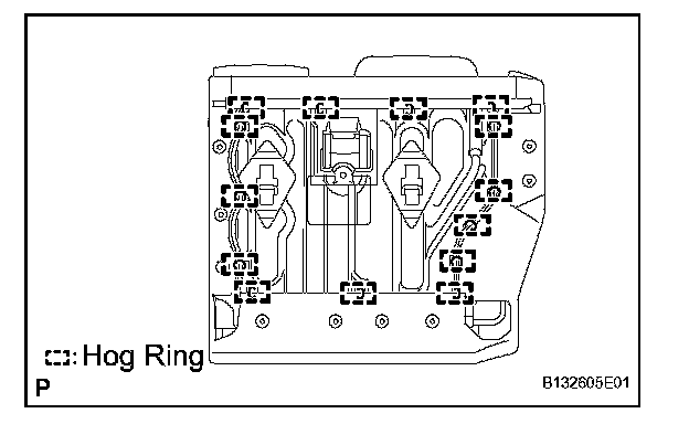 b. Using hog ring pliers, install the seatback cover to the seatback pad with 6 new hog rings.