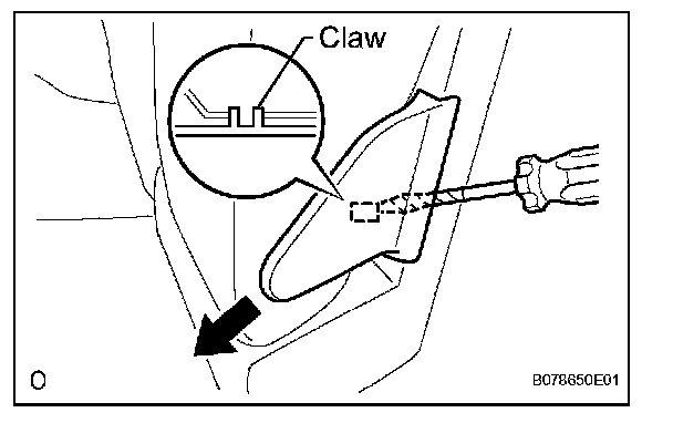 d. Using a screwdriver, detach the 4 claws and remove the rear seatback cover.