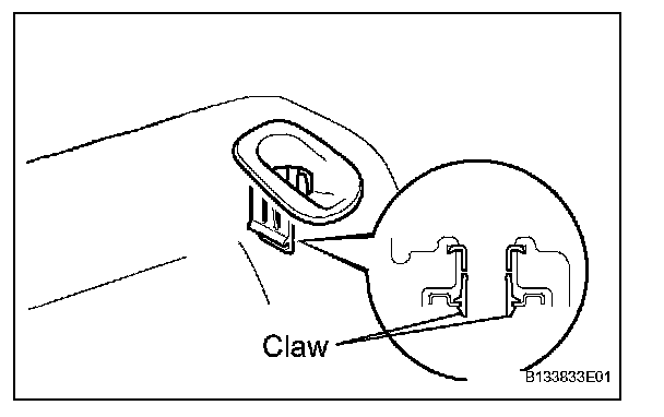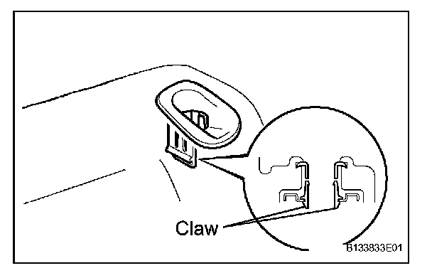 HINT: In order to detach the claws of the seatback stop button grommet, insert your hand between the seatback frame and the seatback cover (with pad).