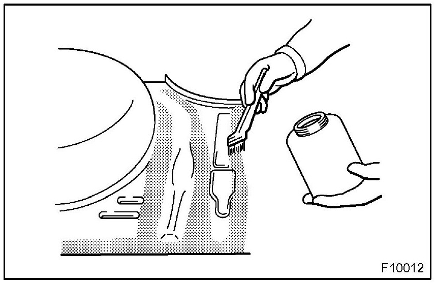 1. To prevent corrosion and protect the body from damage by flying stones, etc., apply anti-chipping paint to the rocker panel, wheel arch areas, balance panel, etc.