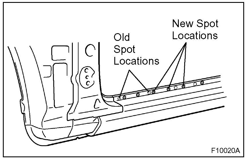 2. Plug welding should be done with a MIG (Metal Inert Gas) welder. Do not gas weld or braze panels at areas other than specified.